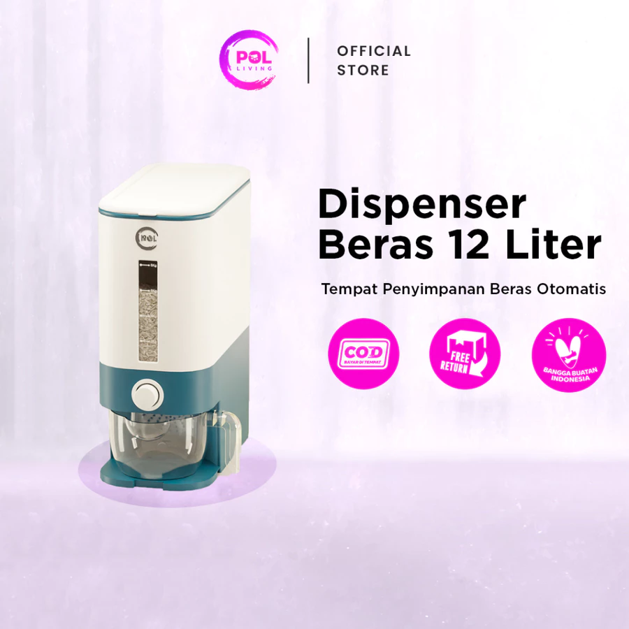 POL Dispenser Beras 12 Liter — penyimpanan beras modern yang higienis, praktis, dan elegan untuk dapur Anda.
