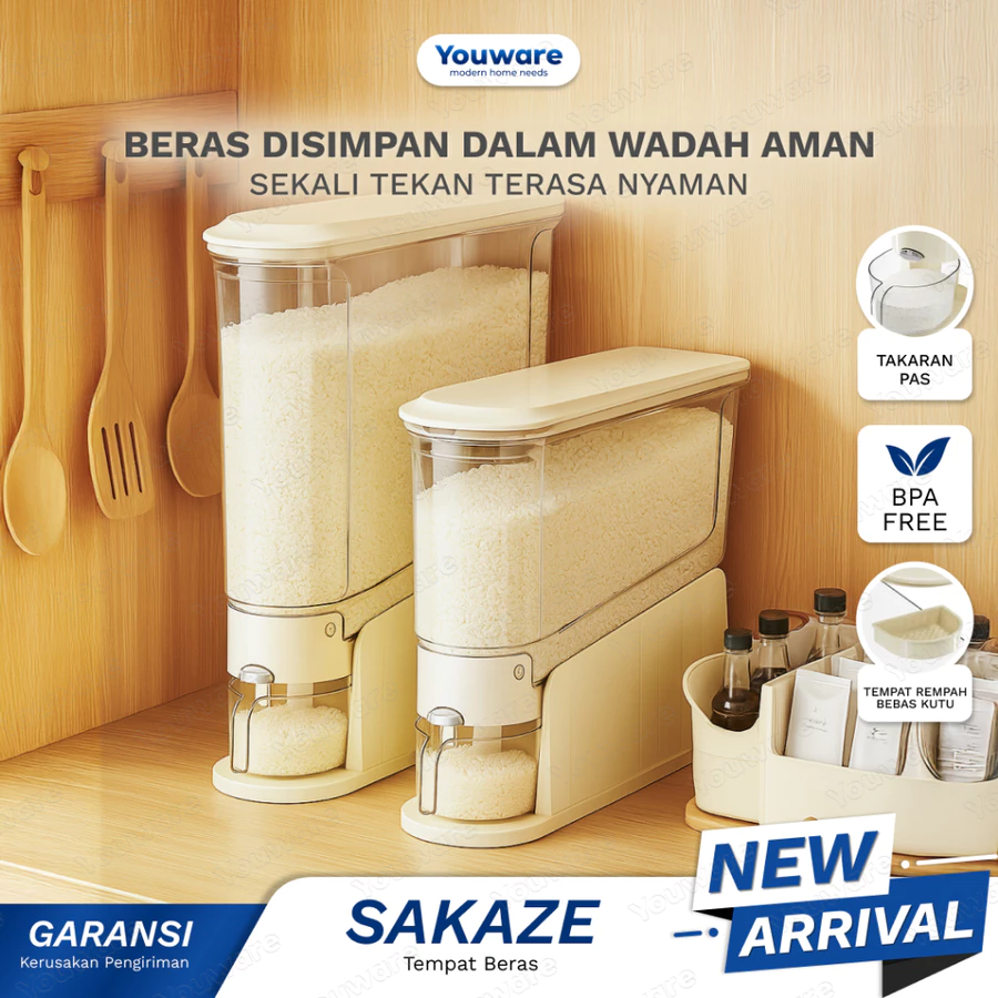 Dengan kombinasi antara desain fungsional dan tampilan modern, Youware Sakaze Dispenser Beras menjadi pilihan tepat untuk Anda yang menginginkan dapur lebih rapi, higienis, dan efisien.