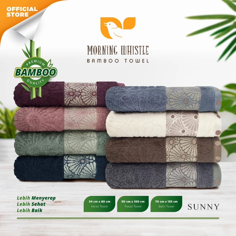 Handuk Morning Whistle Bamboo Towel Sunny hadir sebagai solusi premium bagi Anda yang mencari handuk mandi dewasa dengan kombinasi kenyamanan, kualitas bahan, dan estetika elegan. Tersedia dalam ukuran 70×135 cm (ukuran besar), 50×100 cm (ukuran medium), dan 34×80 cm (ukuran kecil/travel) — memberi fleksibilitas untuk penggunaan sehari-hari, gym, maupun keperluan bepergian.