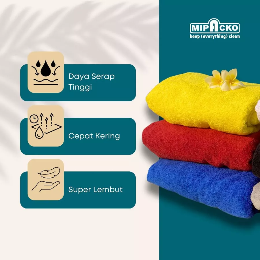 Mipacko Handuk Mandi Microfiber menghadirkan kombinasi sempurna antara kenyamanan, efisiensi, dan daya tahan. Jadikan handuk ini bagian dari rutinitas harian kamu untuk pengalaman mandi yang lebih higienis dan menyenangkan.