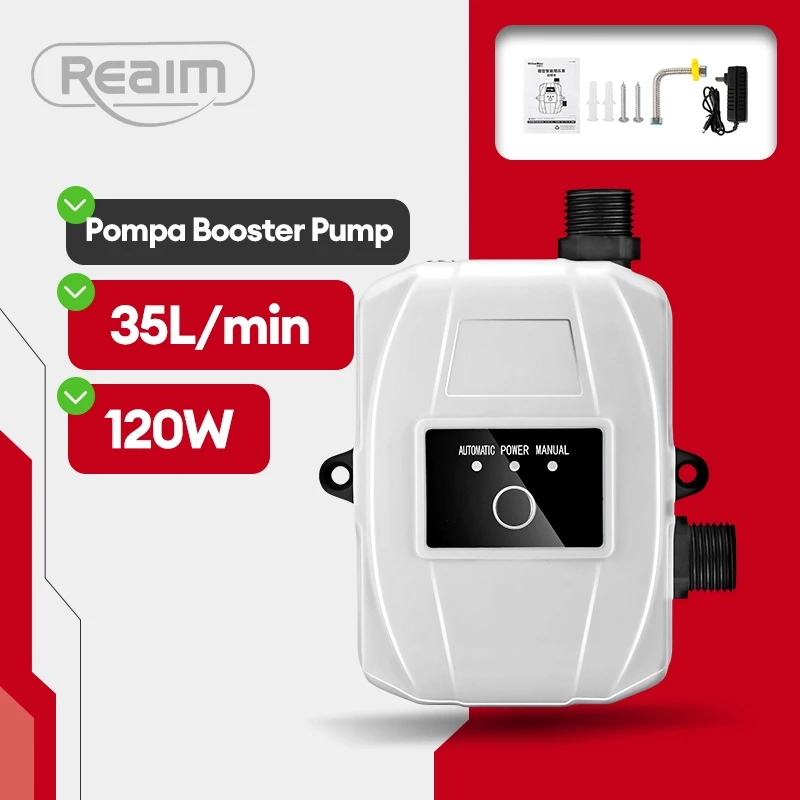 Reaim Pompa Booster Pendorong Air hadir untuk membantu meningkatkan tekanan air dengan performa stabil dan hemat energi. Dengan daya 120W dan aliran maksimum 35 liter per menit, pompa ini mampu memberikan dorongan air yang lebih kuat hingga ketinggian 20 meter.