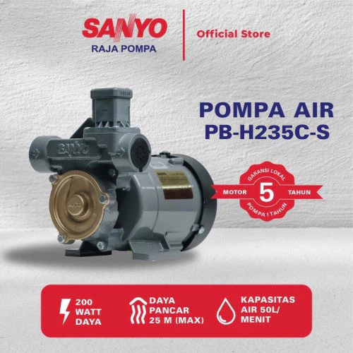 SANYO PB-H235C-S, solusi ideal untuk rumah tangga yang membutuhkan tekanan air lebih kuat, stabil, dan merata ke seluruh kran.
