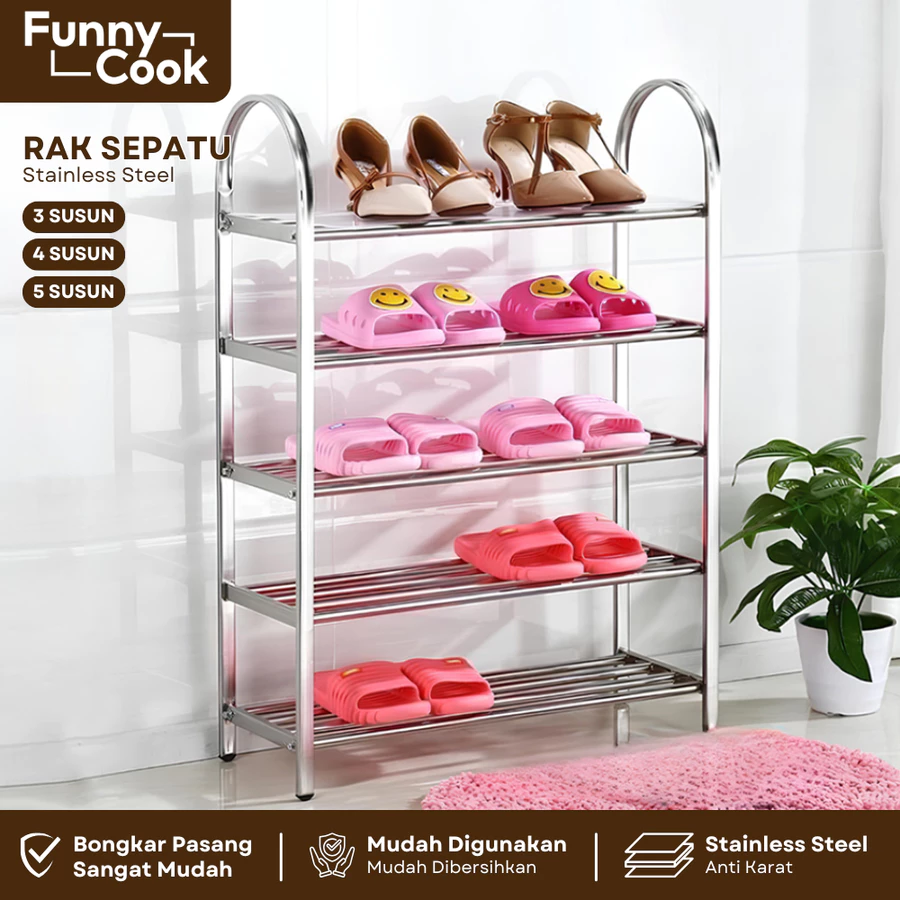FUNNYCOOK Rak Sepatu Stainless Steel adalah pilihan tepat bagi Anda yang menginginkan rak sepatu yang kuat, awet, dan mudah digunakan dalam berbagai situasi hunian.