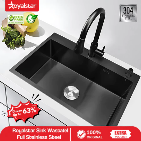 Royalstar Kitchen Sink dirancang untuk Anda yang mengutamakan kualitas, kepraktisan, dan tampilan elegan di dapur. Terbuat dari stainless steel berkualitas tinggi, sink ini tahan lama, mudah dibersihkan, dan siap menjadi pusat perhatian dapur modern Anda.