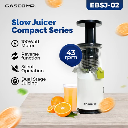 Mulai gaya hidup sehat lebih mudah dengan GASCOMP Slow Juicer EBSJ-02. Menggunakan teknologi cold press dengan kecepatan rendah 43 RPM, juicer ini menjaga kandungan nutrisi, rasa alami buah, serta menghasilkan jus segar tanpa oksidasi dan tanpa bising.