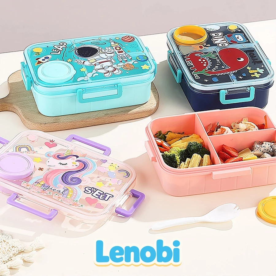 Lengkapi perlengkapan sekolah si kecil dengan LENOBI Lunch Box 3 Sekat yang lucu, aman, dan praktis. Didesain dengan motif karakter favorit anak seperti Astronot, Unicorn, dan Dino yang membuat waktu makan siang jadi lebih menyenangkan.
