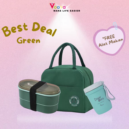 Lengkapi kebutuhan makan siang lebih praktis dan stylish dengan VOOVA Combo Best Deal. Satu paket hemat berisi Lunch Bag insulasi, Lunch Box 2 tingkat, dan Cangkir Sup berbahan Wheat Straw yang aman, tahan lama, dan ramah lingkungan.